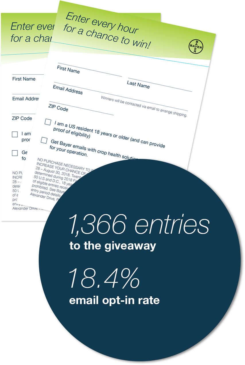Bayer Crop Science needed to draw traffic to their Farm Progress tent. Their goal was to make connections and gather grower email addresses. However, this request presented several challenges: