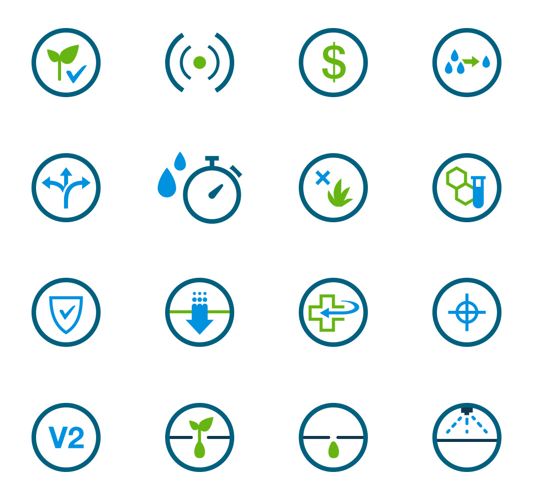 Icon set designed to highlight the unique features offered by each brand within Bayer Crop Science’s broad portfolio of crop protection products. Concepts ranging from product claims to application times are represented with a consistent visual language designed to fit into the simple and bold look of the existing site. A limited color palette helps to create emphasis and enhance clarity.
