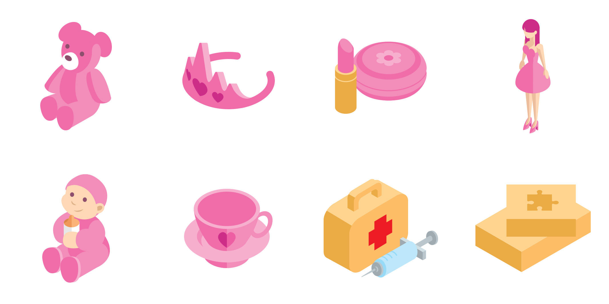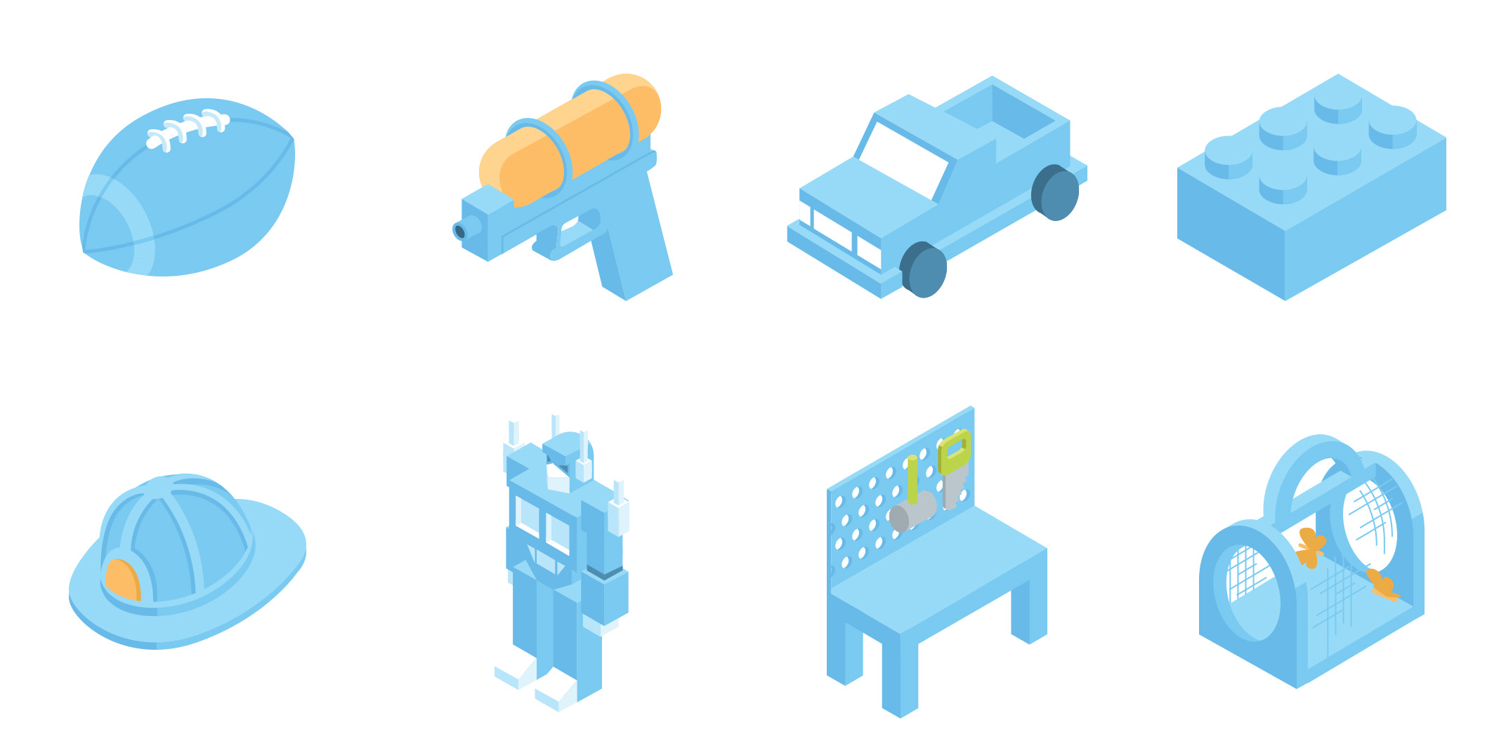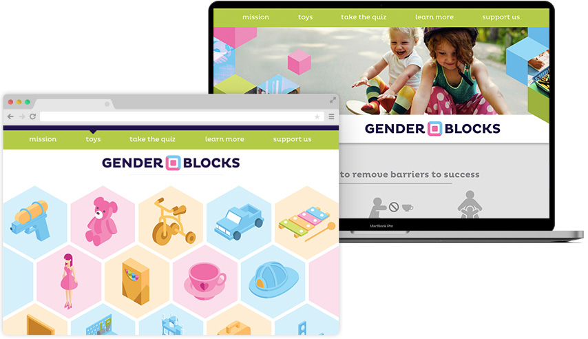 The Gender Blocks campaign spreads awareness of the effects of gender stereotyped toys on learning opportunities for children. The toy illustrations created for the campaign’s interactive website reflect Gender Blocks’ friendly educational branding. The illustrations conform to an isometric perspective which provides consistency and increases their utility in a variety of contexts.